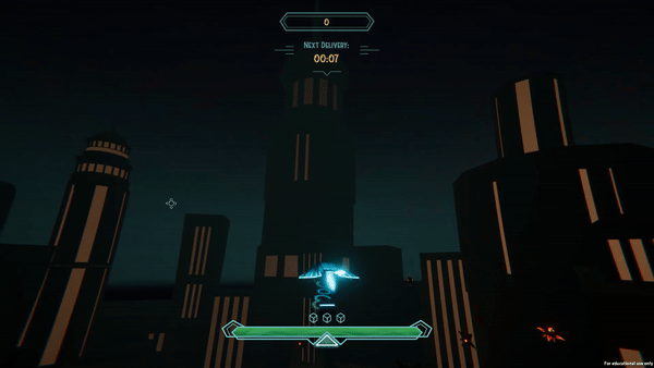 Deliverone is an Arcade-style Air Combat & Delivery Game. The game implements elements from Lunar Lander and Arcade Shooters in a 3D environment. The game is set in the not too distant future where all personal items are delivered by drones. Meanwhile competing courier companies have combat drones sent out to attack your cargo to decrease your rating. Your job is to deliver items while protecting your cargo from getting damaged.